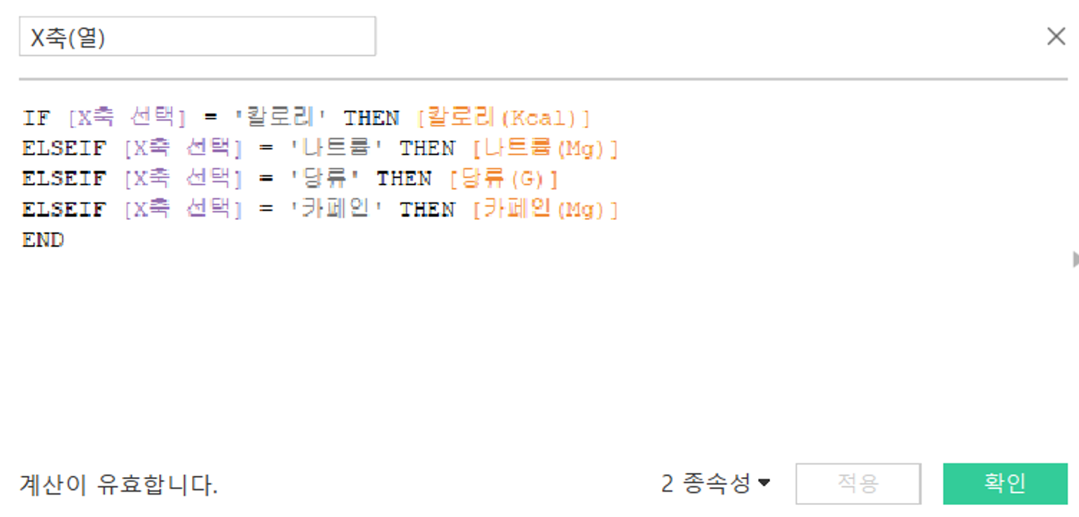 매개변수 생성 → 계산식 생성 → 분석에 활용