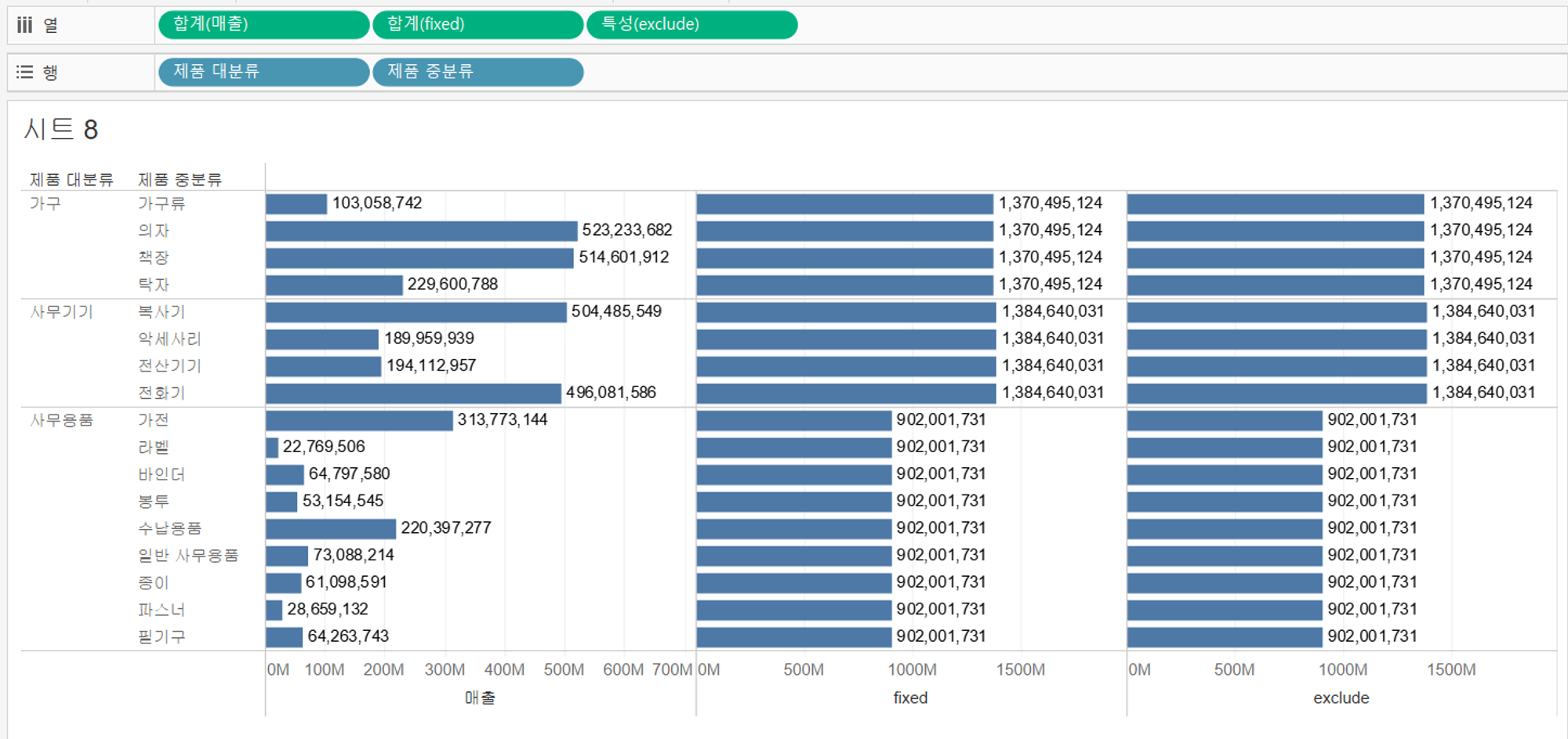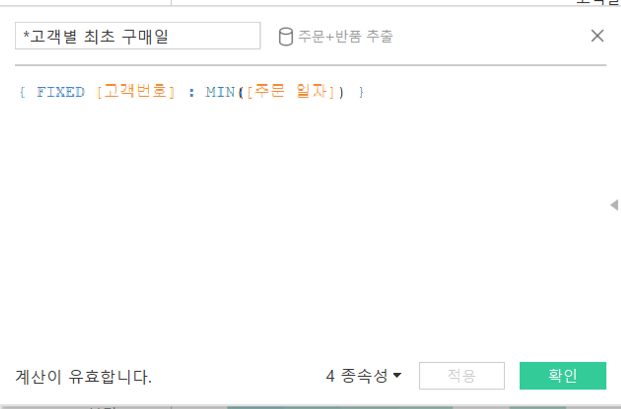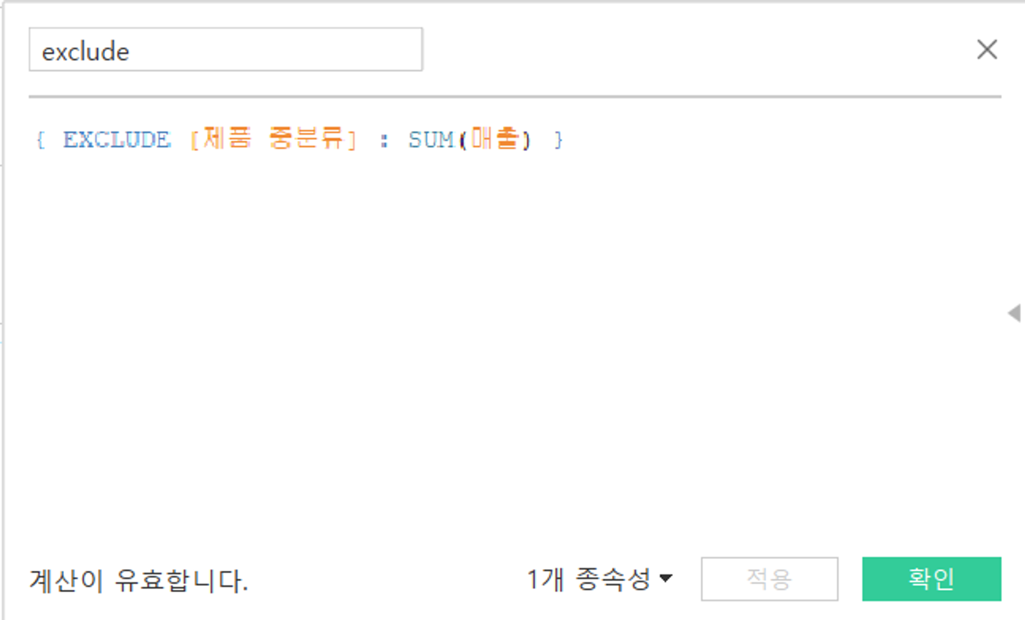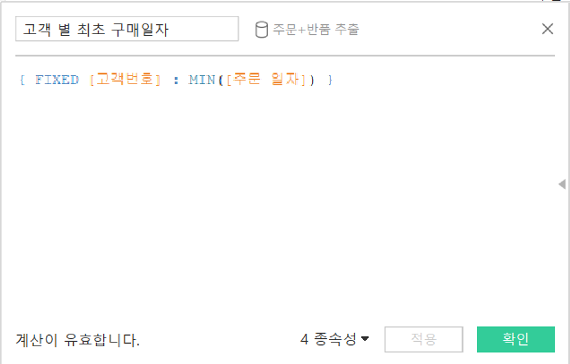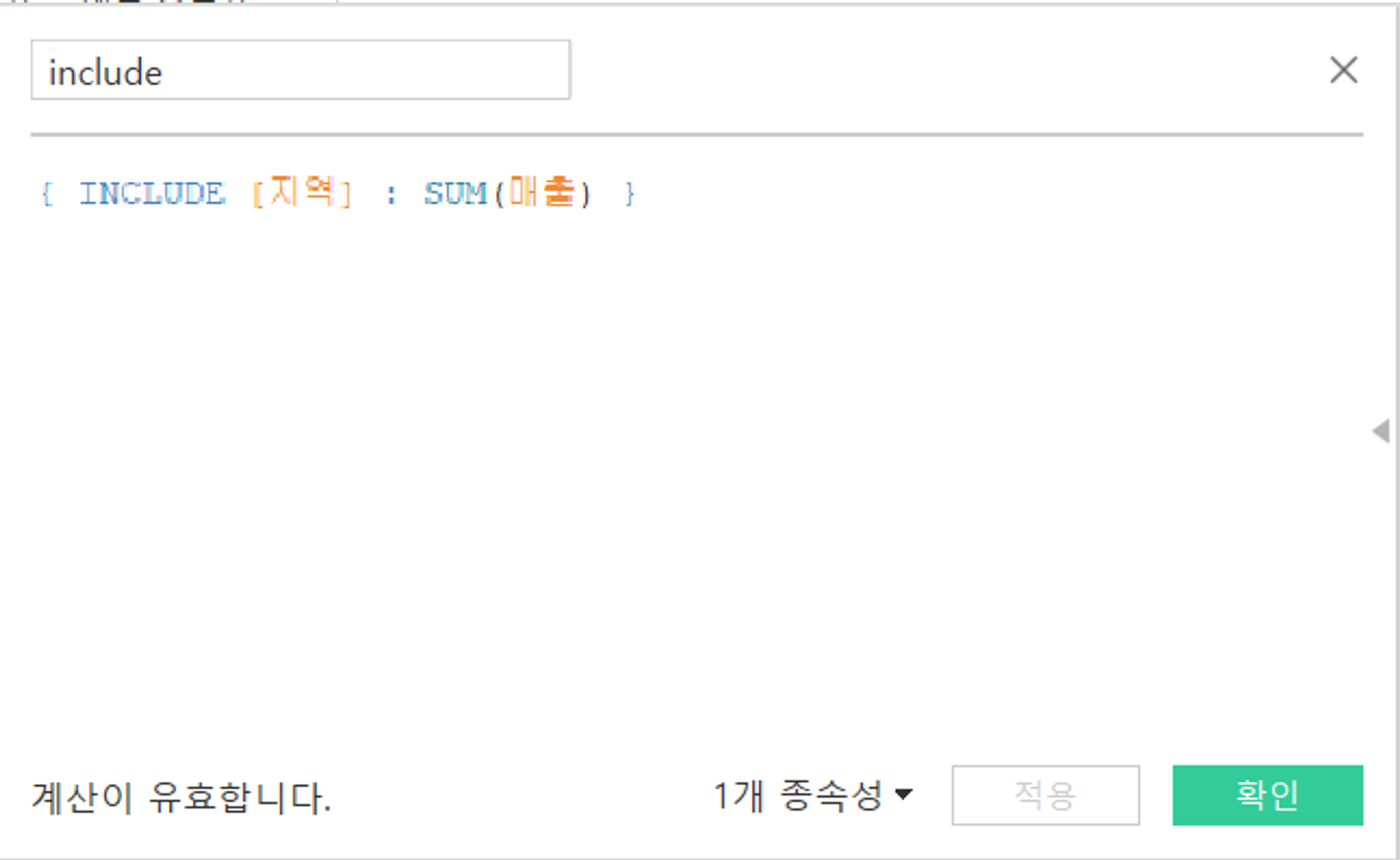 : 뷰(View)에 있는 차원과 상관없이 계산된 필드에서 FIXED(고정시킨)한 차원의 집계식을 계산